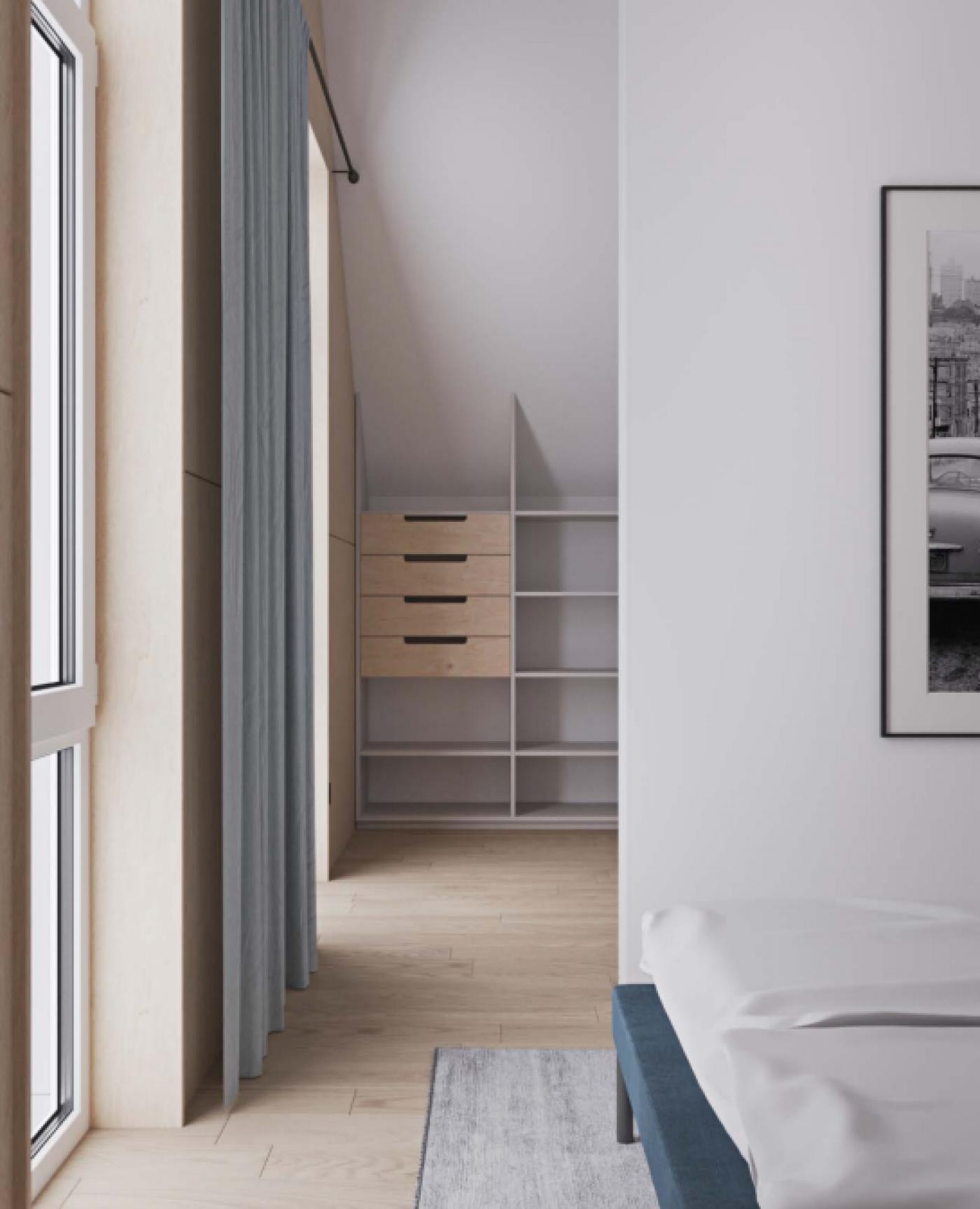 На другому поверсі: господарська спальня з гардеробом, дитяча кімната та санвузол другого поверху.
