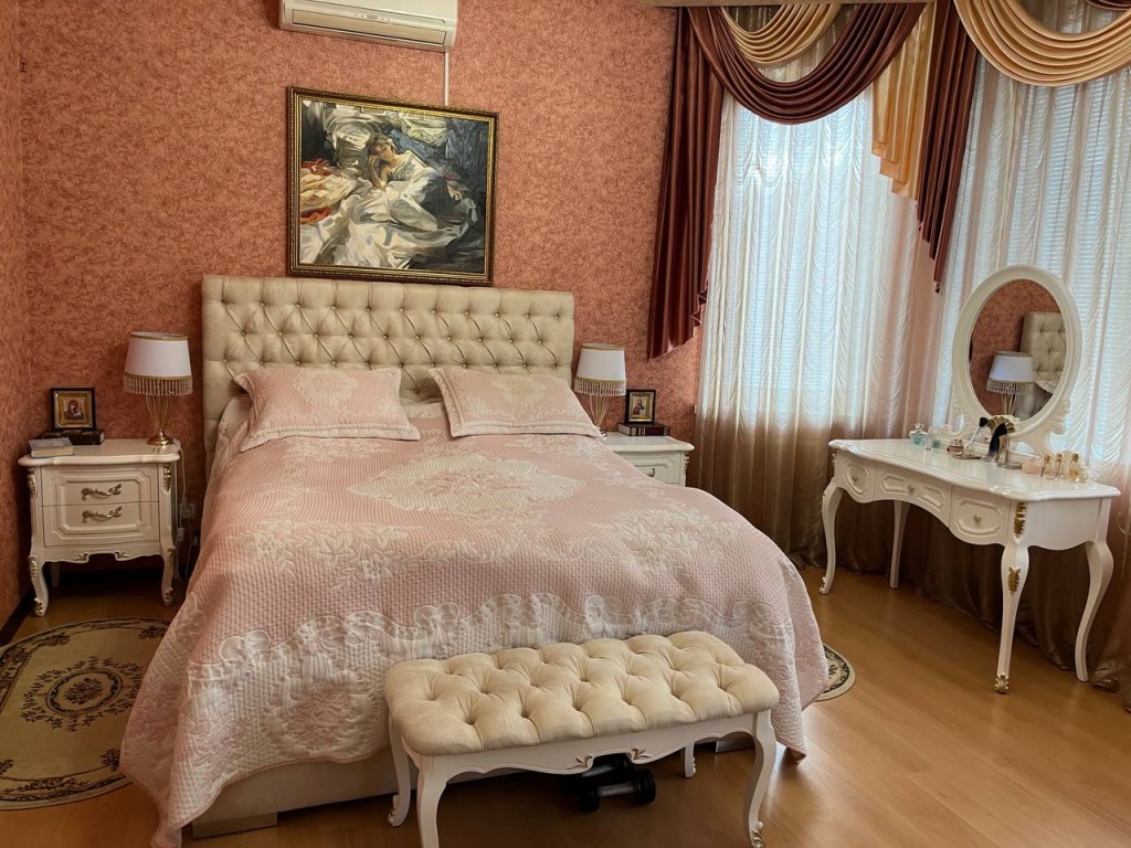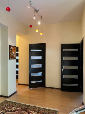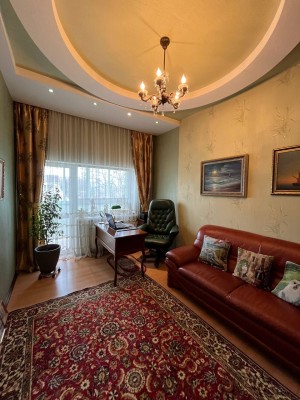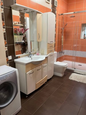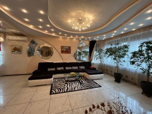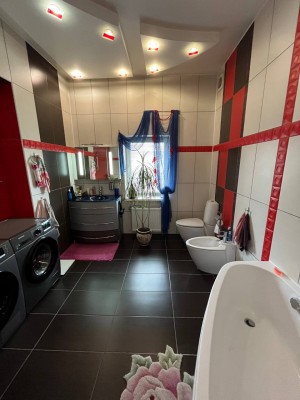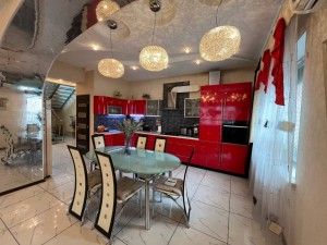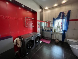 Состояние дома превосходное, авторский дизайн, оригинальная стеклянная лестница с высокопрочного многослойного стекла создает особый колорит в интерьере и визуально совершенно не забирает жилищное пространство. Великолепно выполнено освещение и подсветки всех комнат, что гармонично подчеркивает их дорогое убранство и создает комфорт и уют. Климат в доме регулируется кондиционерами, отопление осуществляется двумя двухконтурными газовыми котлами, теплый пол, есть все коммуникации, в том числе и городская канализация и Интернет. Дом оборудован охранной сигнализацией и камерами видеонаблюдения по всему периметру двора.