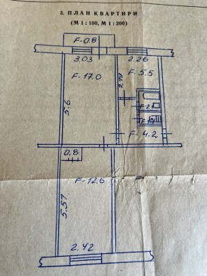 Загальна площа - 44 кв.м., житлова площа - 30кв.м., кухня - 6 кв.м.