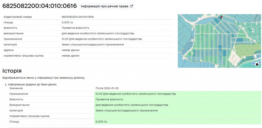Кадастровий номер: 6825082200:04:010:0616