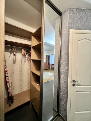 - Меблі:Вбудована кухня, зручний диван, простора шафа-купе.