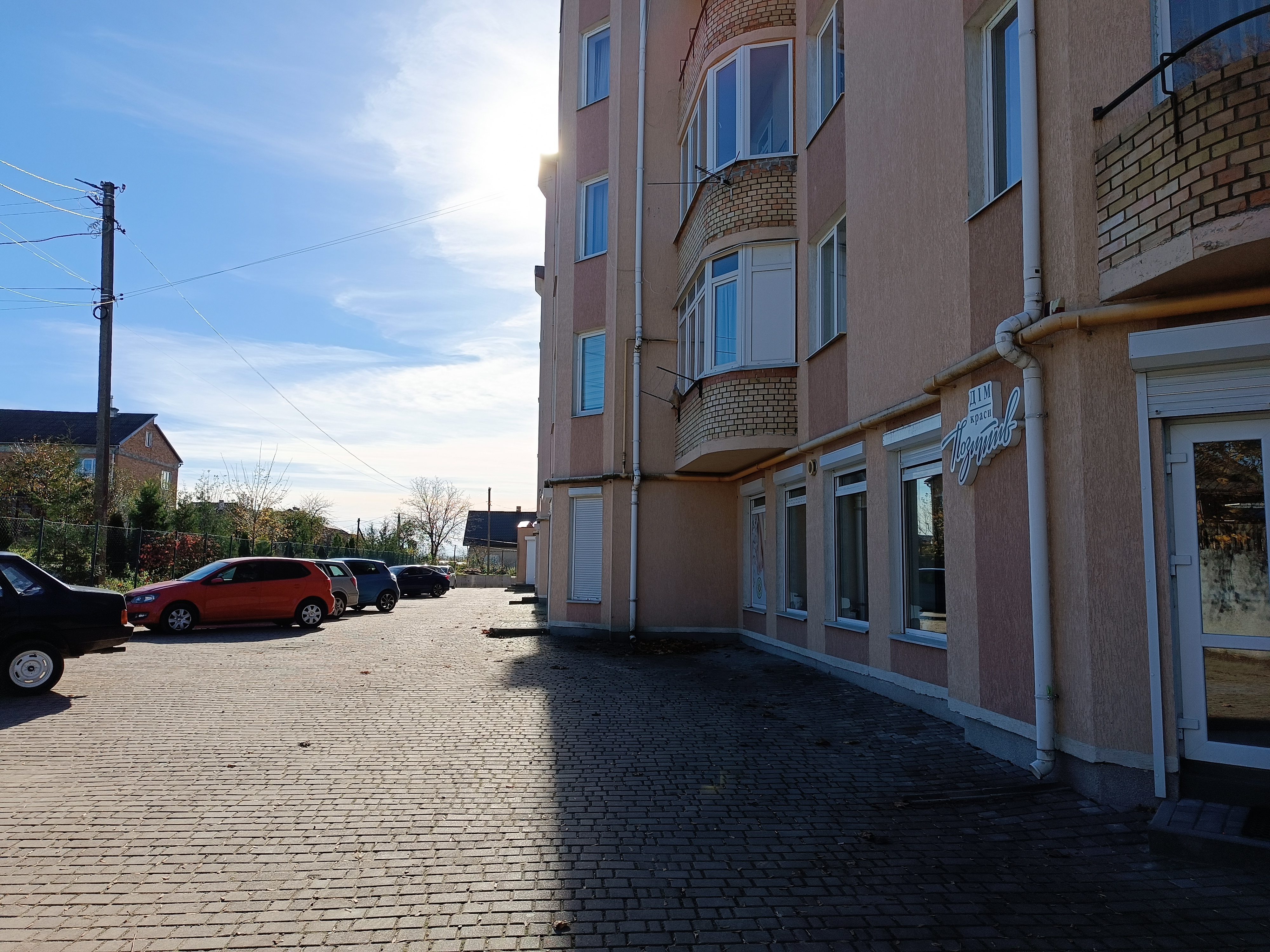 Будинок заселений, довкола багато приватних будинків. Поруч по вулиці знаходяться державні установи, працівникам яких потрібно поїсти і зробити покупки.