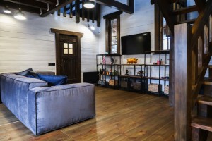 • 1-й поверх: кухня-вітальня (38,8 м2), спальня, санвузол, комора.