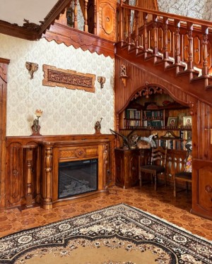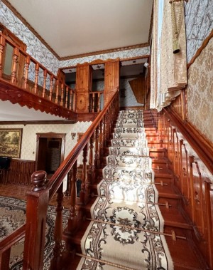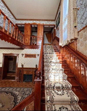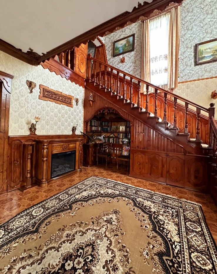 Дубові сходи ведуть на другий поверх з тремя спальнями і сан. вузлом, а на третем поверсі зона відпочинку- більярд, покер , де відкриваєтся чудовий вид на ріку, і на церковь. Добрий маєток для гарной і щастливой жизні. Все продумано з душею для комфорта і радості на кожний день- це місце сили