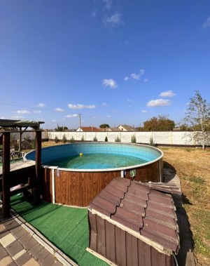 Участок квадратной форми з декількома зонами відпочинку (каркаснй басейн, барбекю, затишна бесідка, лавка- гойдалка, гамак, фруктовий сад. А еще на третьому поверсі будинка уся ігрова мансарда). Є на теріторії сада гостьовий 1к. будиночок з усіма удобствами.
